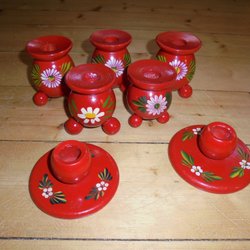 Röda Ljusstakar i trä. I större kulljusstake + 2st mindre. Retro