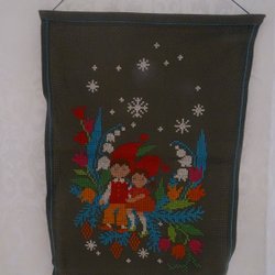 Vintage Broderad Julduk Tomtar Ljusstakar Text 82x84