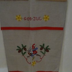 Handbroderad paradhandduk tomtar