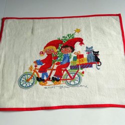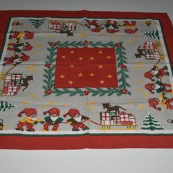 Julduk med tomtar, duk, retro, vintage, 60-tal, 70-tal