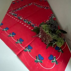 Röd-vit randig duk/ Julduk i bomull retro