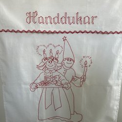 Broderad Lucia + Stjärngosse Paradhandduk Broderat på vitt tyg till Advent + Jul