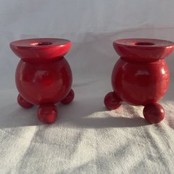 2 röda kulljusstakar i trä Sweden vintage retro julljusstakar