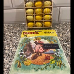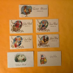 Letar du efter fina handarbeten med påsktema eller kanske något att göra själv? På Tradera finns inte bara möjlighet att köpa färdigvirkade dukar och andra handgjorda påskprydnader, ibland kan man även hitta påbörjade broderier, oanvända handarbeteskit och begagnade mönster till virkade påsksaker. Därutöver finns också ett brett urval av tryckta påsktextilier och diverse vintagedekorationer, såsom klassiska ägghönor i porslin och trätuppar i retrodesign. Här har man också möjlighet att införskaffa oskrivna påskkort, liksom oöppnade förpackningar med allt från äggvästar och pappersbonader till kylskåpsdekorationer och andra begagnade påsksaker i nyskick.