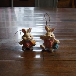 Två små söta kaniner att hänga i påskriset