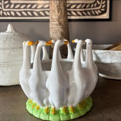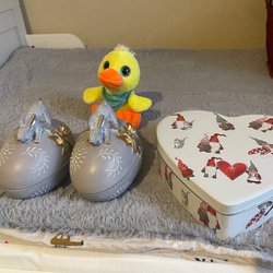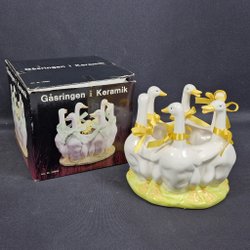 Om man vill ordna påskstämning i hemmet till en billig peng är Tradera en ypperlig plats att leta efter prisvärda påsksaker. Här finns annonser för det mesta som har med påsken att göra, inklusive begagnade påskdukar, bordstabletter, löpare, gardiner, kuddar och väggbonader med klassiska påskmotiv – både i nyare design och i retrostil. Prydnadskycklingar, påskharar, äggkoppar, gula ljus, ljusstakar och manschetter är andra vanliga påsksaker som ofta dyker upp i utbudet. Precis som påskgummor, tuppar, hönor och ägg i olika varianter. Förutom handmålade prydnadsägg, traditionella påskägg och godisgömmor av olika slag kan man även ha turen att stöta på begagnade designerägg i nyskick från formgivare som Lasse Åberg och Ulrika Hydman Vallien. Man kan också hitta äggvärmare och andra virkade påsksaker med fina mönster, liksom mängder av fjädrar och mindre pynt att hänga i påskriset. Däribland hela set med små påskkycklingar, glasdroppar, ägg, virkade blommor, hjärtan, skruvar, harar och liknande figurer. Tillgången på påsksaker varierar beroende på aktuella annonser, men oavsett vilken typ av påskpynt man föredrar att pryda sitt hem med finns det goda chanser att hitta någonting man tycker om här på Tradera.
