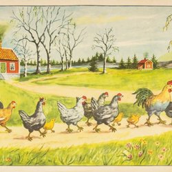 Birger Olsson: Rodnande hönsflört. PÅSKBONAD. 1940t Pappersbonad WW117. 62X22c