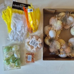 Letar du efter fina handarbeten med påsktema eller kanske något att göra själv? På Tradera finns inte bara möjlighet att köpa färdigvirkade dukar och andra handgjorda påskprydnader, ibland kan man även hitta påbörjade broderier, oanvända handarbeteskit och begagnade mönster till virkade påsksaker. Därutöver finns också ett brett urval av tryckta påsktextilier och diverse vintagedekorationer, såsom klassiska ägghönor i porslin och trätuppar i retrodesign. Här har man också möjlighet att införskaffa oskrivna påskkort, liksom oöppnade förpackningar med allt från äggvästar och pappersbonader till kylskåpsdekorationer och andra begagnade påsksaker i nyskick.