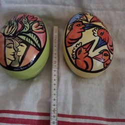 Om man vill ordna påskstämning i hemmet till en billig peng är Tradera en ypperlig plats att leta efter prisvärda påsksaker. Här finns annonser för det mesta som har med påsken att göra, inklusive begagnade påskdukar, bordstabletter, löpare, gardiner, kuddar och väggbonader med klassiska påskmotiv – både i nyare design och i retrostil. Prydnadskycklingar, påskharar, äggkoppar, gula ljus, ljusstakar och manschetter är andra vanliga påsksaker som ofta dyker upp i utbudet. Precis som påskgummor, tuppar, hönor och ägg i olika varianter. Förutom handmålade prydnadsägg, traditionella påskägg och godisgömmor av olika slag kan man även ha turen att stöta på begagnade designerägg i nyskick från formgivare som Lasse Åberg och Ulrika Hydman Vallien. Man kan också hitta äggvärmare och andra virkade påsksaker med fina mönster, liksom mängder av fjädrar och mindre pynt att hänga i påskriset. Däribland hela set med små påskkycklingar, glasdroppar, ägg, virkade blommor, hjärtan, skruvar, harar och liknande figurer. Tillgången på påsksaker varierar beroende på aktuella annonser, men oavsett vilken typ av påskpynt man föredrar att pryda sitt hem med finns det goda chanser att hitta någonting man tycker om här på Tradera.
