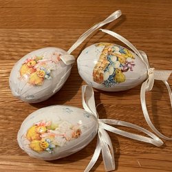 Om man vill ordna påskstämning i hemmet till en billig peng är Tradera en ypperlig plats att leta efter prisvärda påsksaker. Här finns annonser för det mesta som har med påsken att göra, inklusive begagnade påskdukar, bordstabletter, löpare, gardiner, kuddar och väggbonader med klassiska påskmotiv – både i nyare design och i retrostil. Prydnadskycklingar, påskharar, äggkoppar, gula ljus, ljusstakar och manschetter är andra vanliga påsksaker som ofta dyker upp i utbudet. Precis som påskgummor, tuppar, hönor och ägg i olika varianter. Förutom handmålade prydnadsägg, traditionella påskägg och godisgömmor av olika slag kan man även ha turen att stöta på begagnade designerägg i nyskick från formgivare som Lasse Åberg och Ulrika Hydman Vallien. Man kan också hitta äggvärmare och andra virkade påsksaker med fina mönster, liksom mängder av fjädrar och mindre pynt att hänga i påskriset. Däribland hela set med små påskkycklingar, glasdroppar, ägg, virkade blommor, hjärtan, skruvar, harar och liknande figurer. Tillgången på påsksaker varierar beroende på aktuella annonser, men oavsett vilken typ av påskpynt man föredrar att pryda sitt hem med finns det goda chanser att hitta någonting man tycker om här på Tradera.
