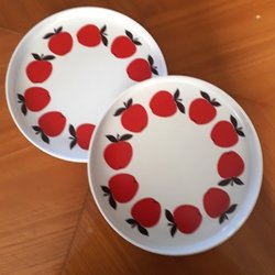MELAMIN två runda BRICKOR / FAT äppeldekor RETRO