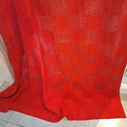 Retro Röd gardin, rutig glesvävd svensktillverkad 70 80-tal