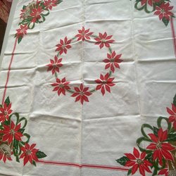 REA PÅGÅR--RETRO-VACKER HANDBRODERAD JULLÖPARE PÅ RÖTTLINNE