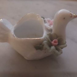 And i Vitt Porslin med "Guldig" Näbb Höjd 4,5 cm Bredd ca 3,5 cm