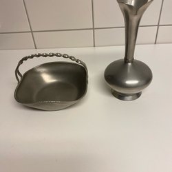2 st Norska Tennföremål. Vas och skål.