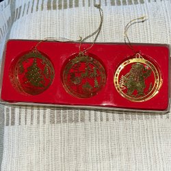 3 Retro Olika Scandia Present GOLD PLATED Julgranspynt Julpynt i orig ask