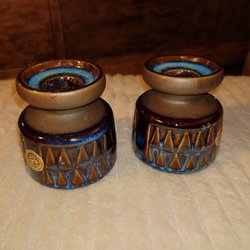 Blå Sjöholm , 2 st Keramikljusstakar av Einar Johansen Bornholm Danmark