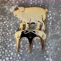 Skinkgaffel gris i mässingsfärg perfekt till julbordet