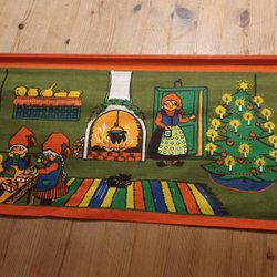 Äldre, lång och bred, julduk löpare med motiv av Jenny Nyström
