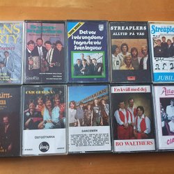 Det skapades väldigt bra musik under senare delen av 1900-talet och kassettbandspelarna gick varma. Det finns ett antal mycket berömda artister som slog igenom under den tidseran men det producerades även allt ifrån svensk dansbandsmusik, folkmusik till popmusik som slog igenom i den klassiska melodifestivalen. På Tradera har du möjlighet att hitta din favoritmusik på kassett i begagnat skick men även i nyskick. Svenska dansband som var populära under kassettbandens storhetstid var till exempel Arvingarna, Lasse Stefanz, Sven-Ingvars och Thorleifs. Förutom dessa klassiker finns det möjlighet att hitta kassetter med musik av många andra dansband på Tradera till fasta priser eller på auktion. Med lite tur kan man hitta kassetter med sin favoritmusik oavsett vilken genre man gillar i både begagnat skick och i nyskick.