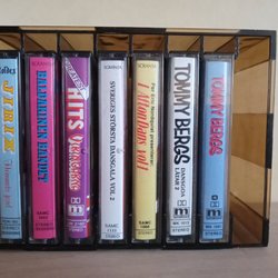 Blandade Dansbandskassetter med Kassettställ - Kassettbandsställ