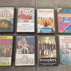 Det skapades väldigt bra musik under senare delen av 1900-talet och kassettbandspelarna gick varma. Det finns ett antal mycket berömda artister som slog igenom under den tidseran men det producerades även allt ifrån svensk dansbandsmusik, folkmusik till popmusik som slog igenom i den klassiska melodifestivalen. På Tradera har du möjlighet att hitta din favoritmusik på kassett i begagnat skick men även i nyskick. Svenska dansband som var populära under kassettbandens storhetstid var till exempel Arvingarna, Lasse Stefanz, Sven-Ingvars och Thorleifs. Förutom dessa klassiker finns det möjlighet att hitta kassetter med musik av många andra dansband på Tradera till fasta priser eller på auktion. Med lite tur kan man hitta kassetter med sin favoritmusik oavsett vilken genre man gillar i både begagnat skick och i nyskick.