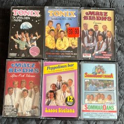 Det skapades väldigt bra musik under senare delen av 1900-talet och kassettbandspelarna gick varma. Det finns ett antal mycket berömda artister som slog igenom under den tidseran men det producerades även allt ifrån svensk dansbandsmusik, folkmusik till popmusik som slog igenom i den klassiska melodifestivalen. På Tradera har du möjlighet att hitta din favoritmusik på kassett i begagnat skick men även i nyskick. Svenska dansband som var populära under kassettbandens storhetstid var till exempel Arvingarna, Lasse Stefanz, Sven-Ingvars och Thorleifs. Förutom dessa klassiker finns det möjlighet att hitta kassetter med musik av många andra dansband på Tradera till fasta priser eller på auktion. Med lite tur kan man hitta kassetter med sin favoritmusik oavsett vilken genre man gillar i både begagnat skick och i nyskick.