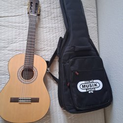 De allra flesta börjar med en akustisk nylonsträngad gitarr, vilket anses vara den mest klassiska modellen. Med denna modell kan man oftast räkna med att hitta en billig gitarr, men allt beror såklart på varumärke, material och utförande. I de flesta fall är de designade med en bred greppbräda för att ge gott om plats för nybörjarfingrar och kommer i många olika storlekar för att erbjuda komfort för alla. Att den är utrustad med nylonsträngar gör dessutom att man inte får lika ont i fingrarna som med en gitarr där strängarna är tillverkade i stål. I vårt second hand-utbud har du chansen att hitta akustiska nylonsträngade gitarrer från bland annat Levin, Yamaha, Gardisten Instrument och Fender.