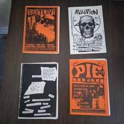 Parti av 4 Punk/Hardcore Fanzines: Skitliv!, Pollution, 10 Hålla Pie Mag,