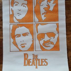 Teckning av The Beatles på tjockt papper / 40 x 30 Cm