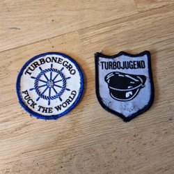 Turbonegro vitt, blått, svart tygmärke