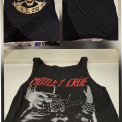 Linne med tryck av Ratt, AC/DC och Mötley Crüe. L/XL. Glam, 80s, rock, metal
