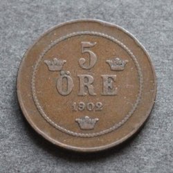 5 Öre 1902. Vackert ex. Kv god 01
