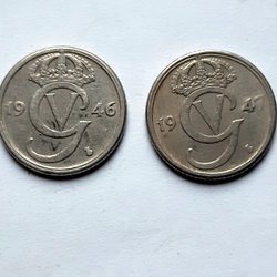 25 st Svenska mynt 25 öre från åren 1932-1941