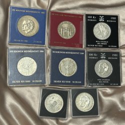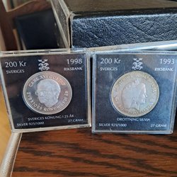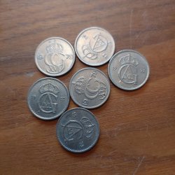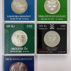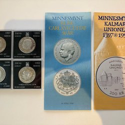 Svenska mynt präglade under Carl XVI Gustafs era berättar historien om en period av snabba förändringar, teknologiska framsteg, och sociala omvandlingar. Från 1970-talets industriella och kulturella blomstring till 2000-talets digitala revolution, har dessa mynt varit tysta vittnen till en dynamisk och ständigt föränderlig tid. Genom att samla på dem, blir man del av denna storslagna berättelse, sammanflätad i metall och tid. Om du bläddrar igenom Traderas rika utbud kommer du att stöta på en fascinerande samling av metalliska konstverk. Bland dessa finner man allt från jubileumsmynt, som firar speciella nationella evenemang eller årsdagar, till särskilda designförändringar som reflekterar tidsandan. Det finns också begränsade upplagor som endast präglades under en specifik period, vilka är särskilt värdefulla för samlare och historieentusiaster.