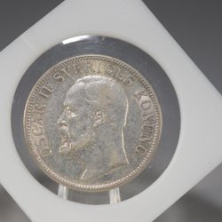 Silvermynt, Oskar II 1907 Sveriges Konung 2kronor, silver 800/1000