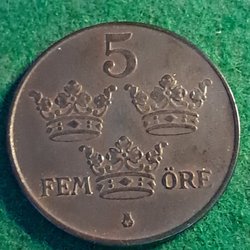 5 Öre - 1950,mycket bra ex ,dock kanthack.