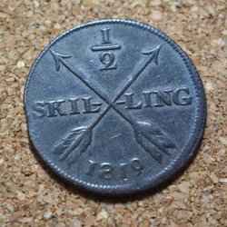 Sverige 1819 Mynt 1/2 Skilling KXIV Kv.6