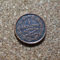 Sverige 1837 Mynt 1/3 Skilling KXIV Kv.8