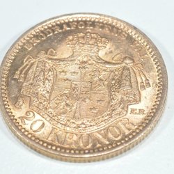 Guldmynt Oskar II 20 kr 1889, diameter 0 23 mm, 21,6k 8,96 gr, V16472