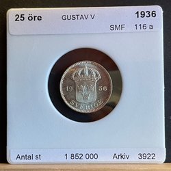 25 Öre 1936 UNC spegel