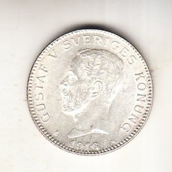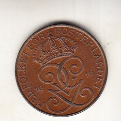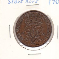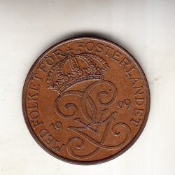 Gustaf V 5 öre 1909 stort kors lite svårare 1