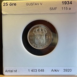 25 öre 1934 UNC, STGL