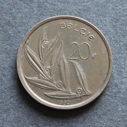 BELGIEN - 20 Francs 1980 - KM 159 - Nickel-Brons - Fransk text