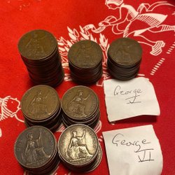 128x Brittiska Pennies - George V and George VI