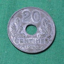Frankrike 1943 Zink Mynt 20 centimes UNC