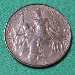 Frankrike 1906 Mynt 10 centimes Kv.8