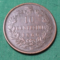 Italien 1866N Mynt 10 centesimi Kv.6
