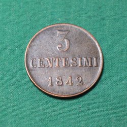 Italien/Sardinien 1842L Mynt 3 centesimi Kv.8