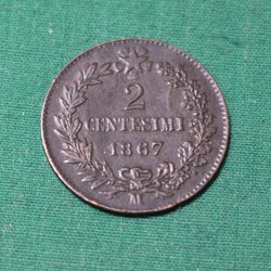 Italien 1867M Mynt 2 centesimi Kv.8